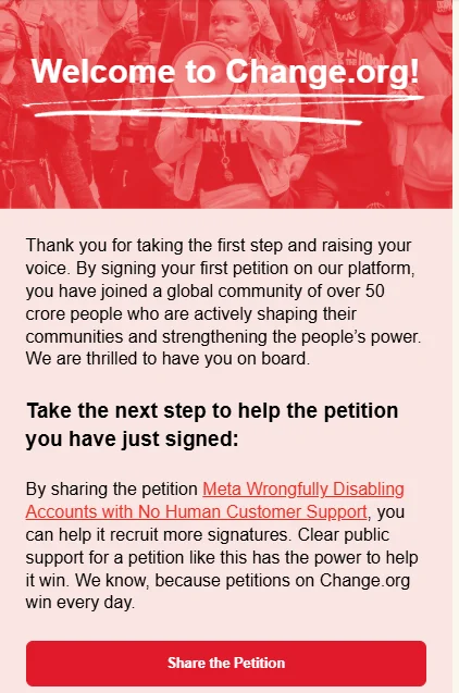 Many users are signing petitions to demand more transparency and fairness from Instagram. One such petition, Meta: Wrongfully Disabling Accounts With No Human Customer Support, is calling on Instagram and Meta to improve their support system and ensure that legitimate accounts are not banned unfairly. By signing this petition, you stand with people who have been affected by sudden bans and push for greater accountability and better customer support.